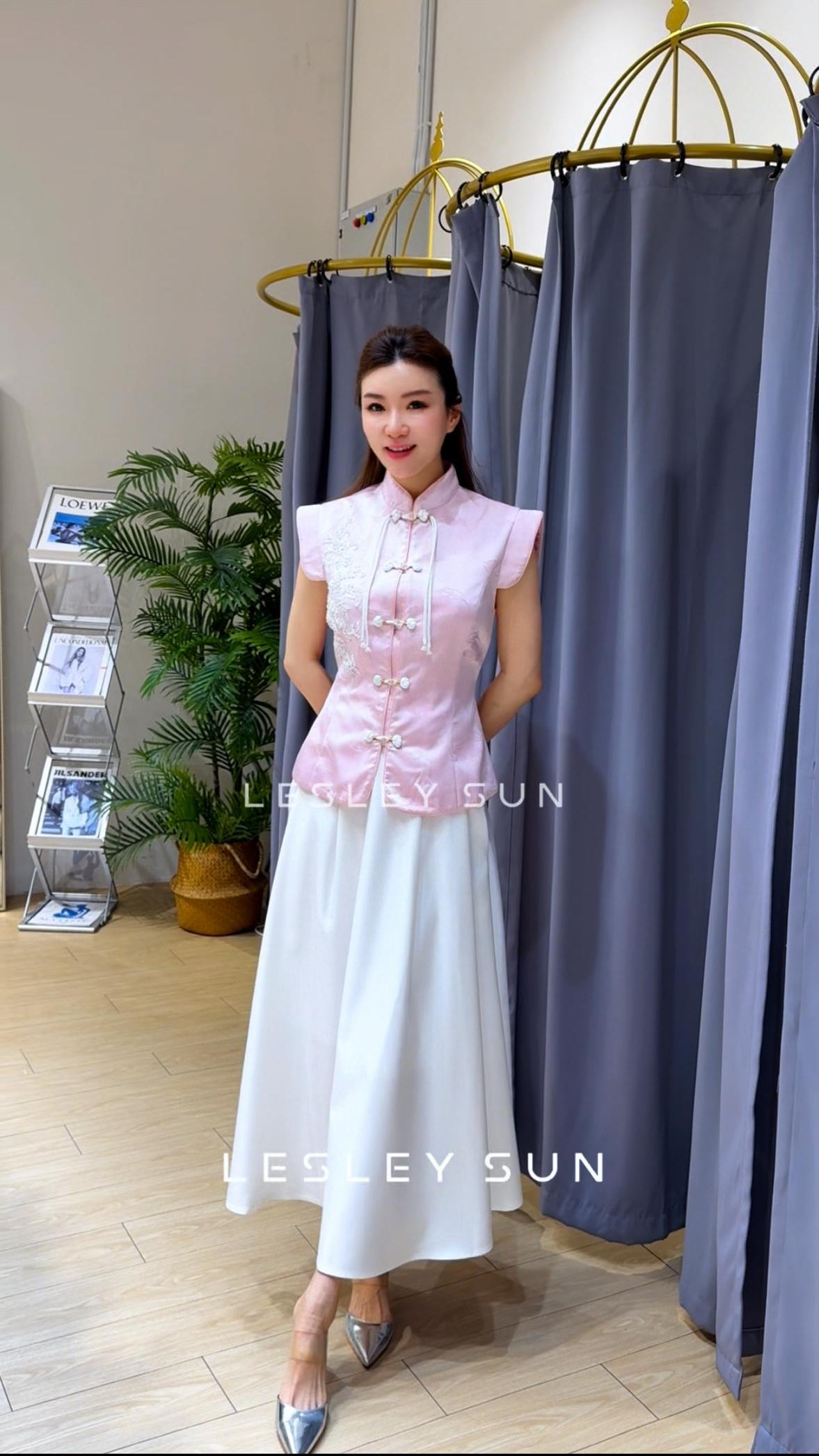 Avalora Orient Top presents a modern take on classic Orient elegance with a refined, feminine silhouette. Designed with a sleeveless cut and a structured mandarin collar, it features delicate knot-button detailing along the front that adds subtle heritage charm while keeping the look clean and contemporary.