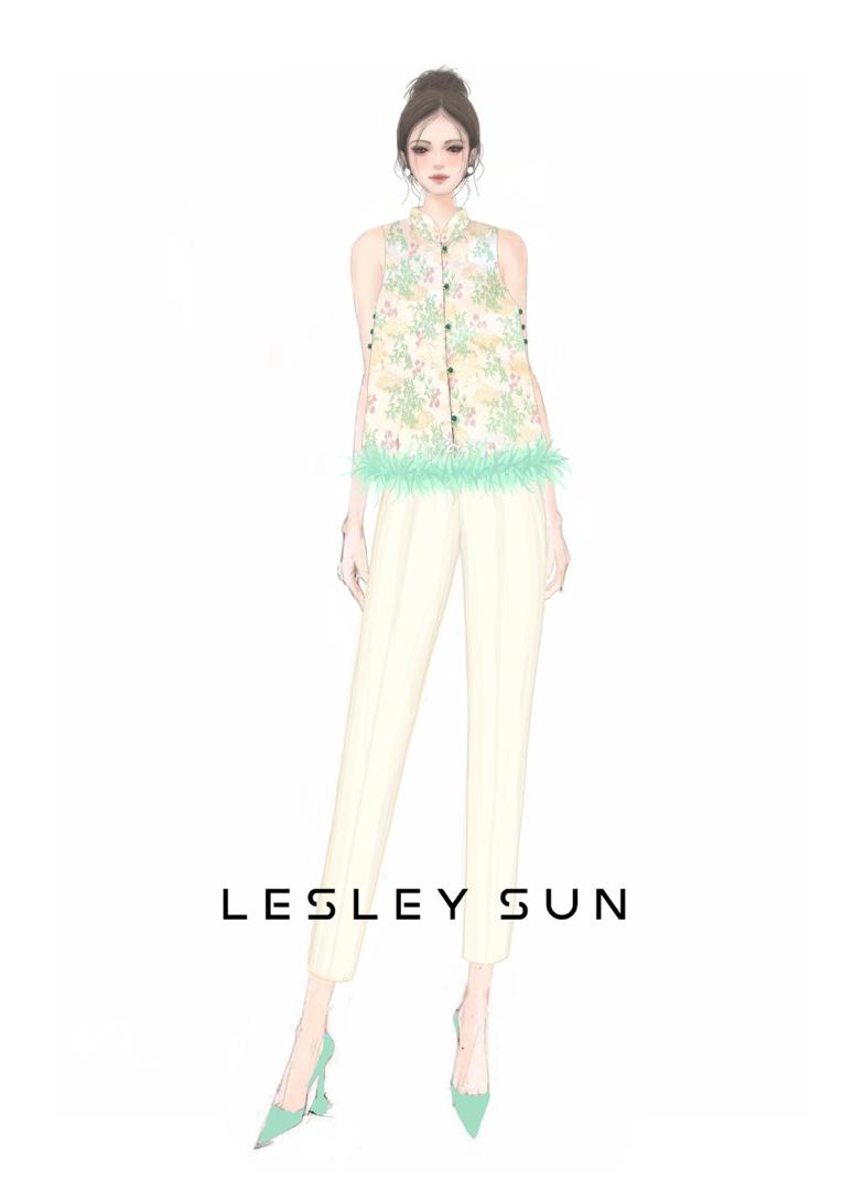 The mandarin collar and classic knot-button front add a graceful touch, while the feather-trimmed hem introduces soft, playful movement that elevates the silhouette. Light yet expressive, it creates an effortless statement suited for festive days, special gatherings, or simply adding a touch of elegance to everyday dressing.