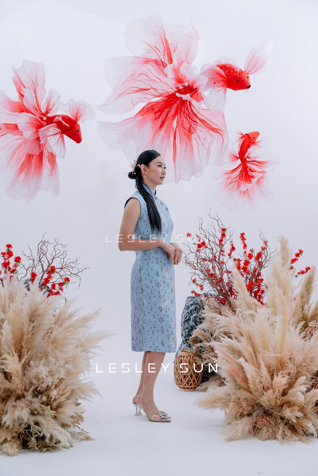 Soft, serene, and effortlessly graceful—the Sylvaine Orient Dress is your perfect day-to-evening piece. Crafted from light blue satin with a delicate floral and crane motif, this cheongsam-style midi dress brings a breath of tranquility and elegance to any occasion. The high mandarin collar and tailored fit create a timeless silhouette, while the longer hemline adds poise and refinement. Ideal for garden parties, cultural celebrations, or wedding guest looks, Sylvaine is a gentle nod to heritage with a modern, romantic twist.