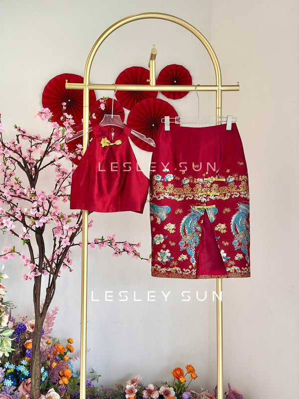 The Orianne Orient Setwear celebrates traditional elegance with a festive, feminine allure. Designed with a sleeveless high-neck top, it is accented with delicate Orient-inspired details that highlight a polished and graceful silhouette. Finished in a vibrant, auspicious red, the design...