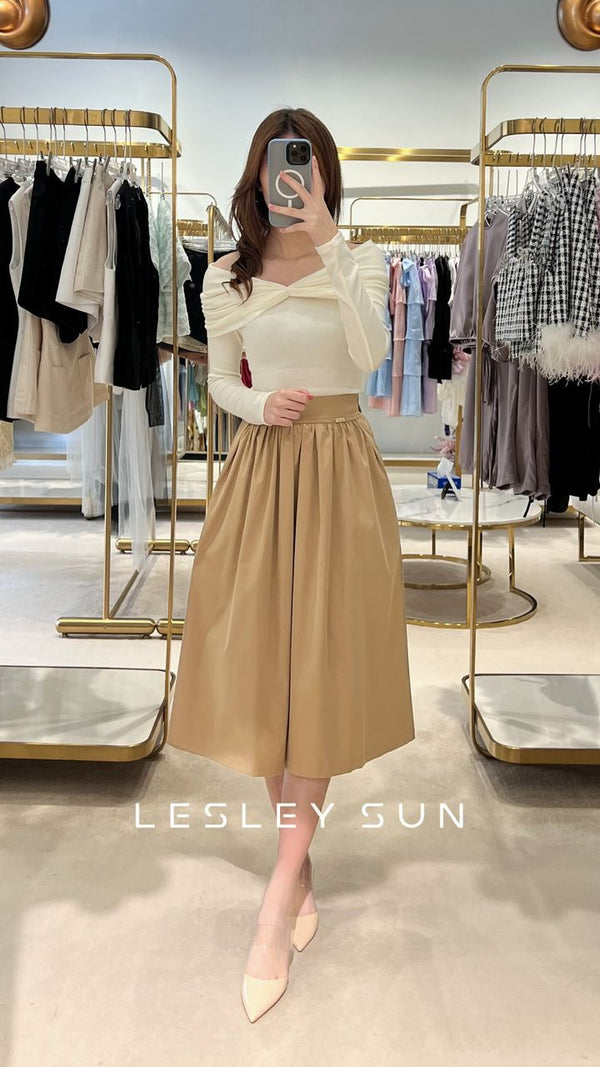 Zorina Skirt is crafted to offer a soft and smooth texture that drapes beautifully. Designed with a high-waist fit and gentle pleats, it creates a flattering silhouette for any body type. Available in classic black and white, it pairs effortlessly...