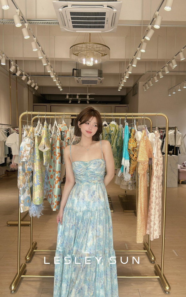 Nereida dress features a delicate blend of soft blue tones, perfect for a serene and elegant look. The ruched bodice accentuates the figure, while the tiered skirt adds a touch of romantic flair. Ideal for both casual outings and special...