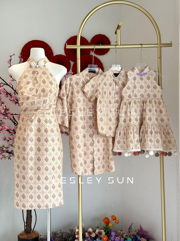 This Nerissa Orient Dress exudes sophistication with its sleek halter neckline and form-fitting silhouette. The intricate oriental patterns add a touch of tradition, beautifully contrasting with the modern cut of the dress. Perfect for festive gatherings, this set combines comfort...