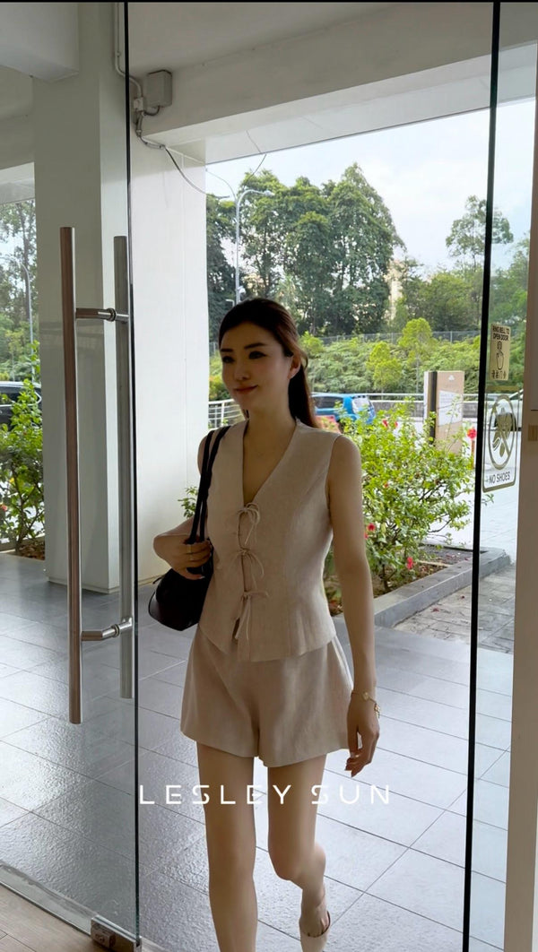 Saskia TopMinimal yet full of charm — the Saskia Top blends vintage romance with contemporary tailoring. Crafted from breathable linen, it features a flattering V-neckline, wide straps, and delicate ribbon tie details that cinch the silhouette with understated femininity. Available...