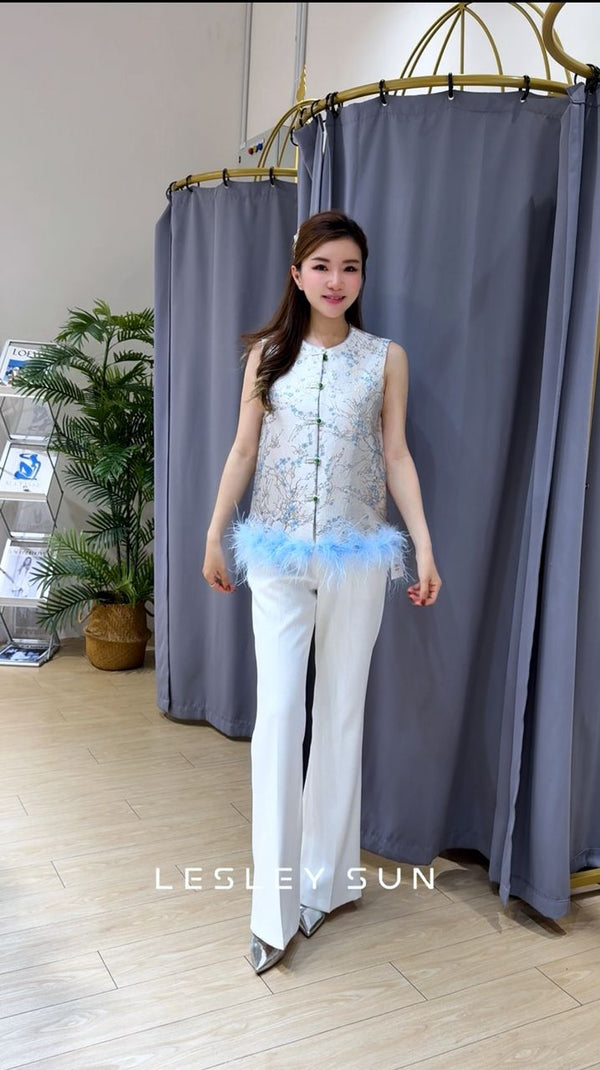 Seraphiel Orient Top The Seraphiel Orient Top brings an elegant statement to the classic sleeveless silhouette. Cut in a structured jacquard with a gentle sheen, it highlights an intricate botanical motif that gives the piece a soft, artistic presence. Traditional...